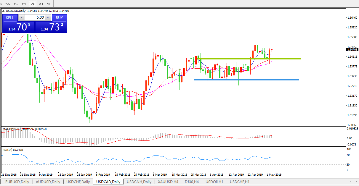 美元兑加元USDCAD 日线图: