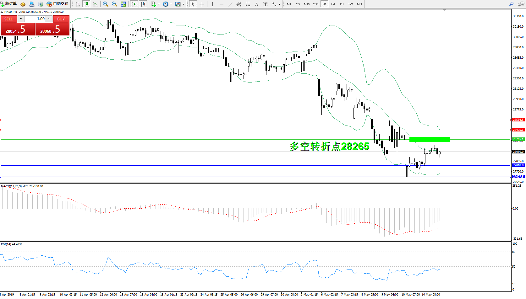 恒指HK50 ——1小时K线图显示: