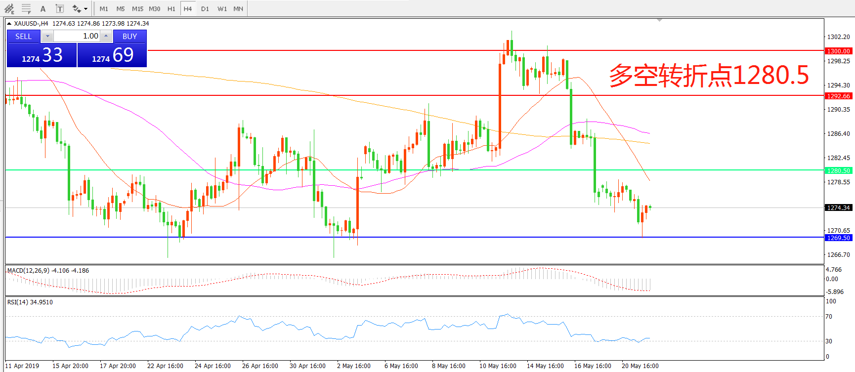 周二(5月21日),美国总统特朗普接受媒体采访时称,最近几轮美中磋商之前他曾告诉中方,美中之间的协议不可能是对等的(50-50),由于中国过去的贸易做法,协议必须更有利于美国 。美元指数创逾三周新高,现货黄金继续刷新两周半低点,逼近1270美元关口,但贸易冲突如陷入持久战,或逼迫美联储快速降息,进而抑制美元升势。周三将公布的美联储会议纪要,重点关注。