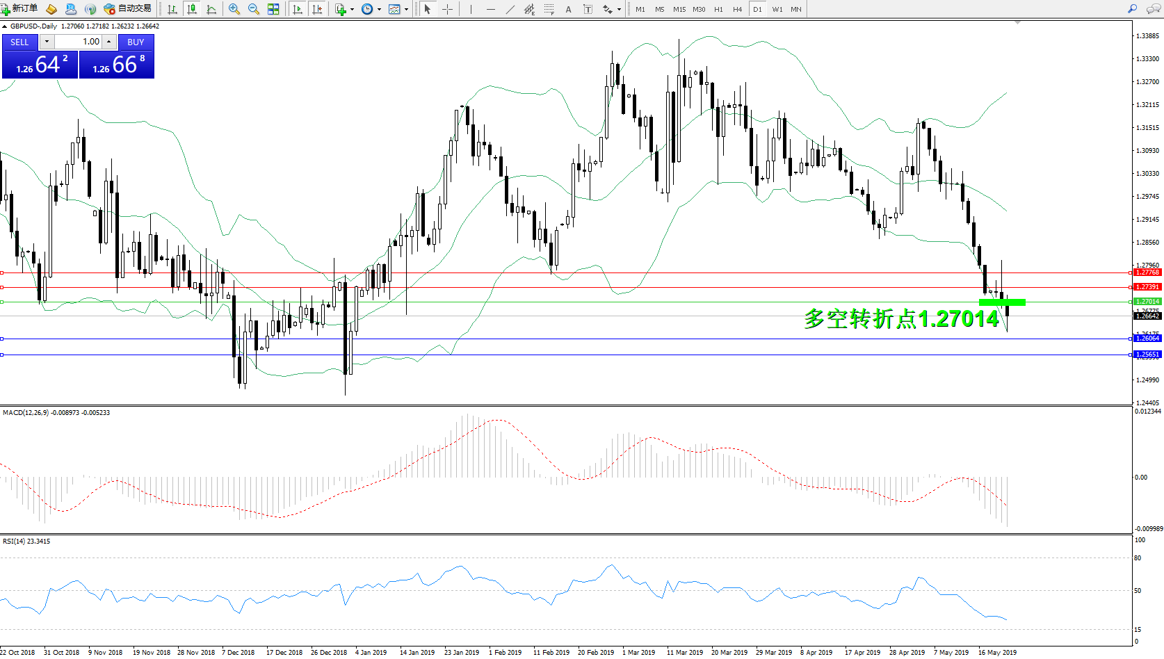 交易策略:1.27014下方看跌,目标1.26064、1.25651
