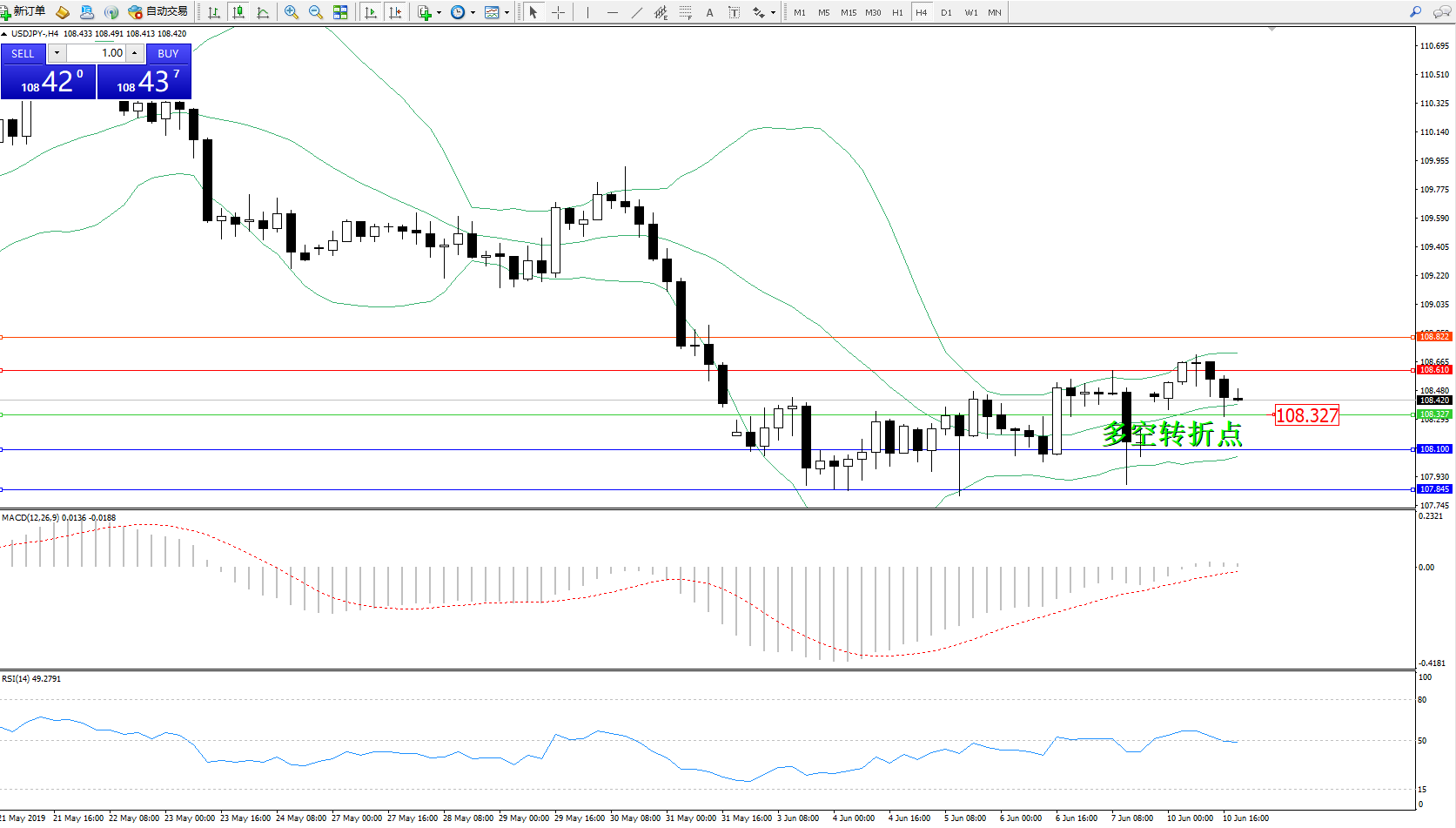 交易策略:108.327上方看涨,目标108.610108.822