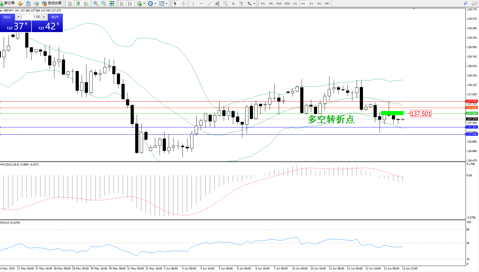 备选策略:137.501上方看涨,目标137.626、137.763