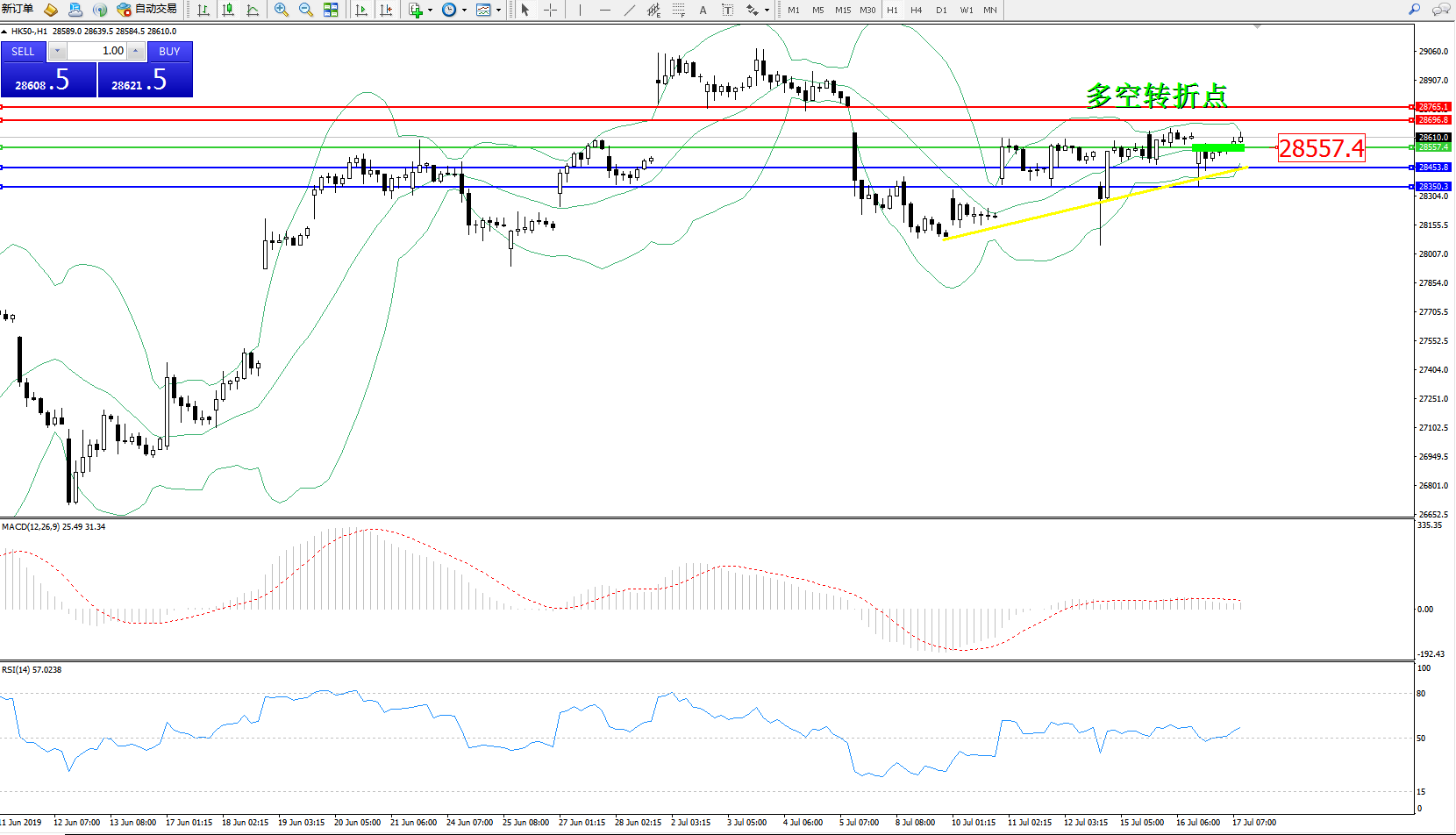 恒指HK50 ——1小时K线图显示: