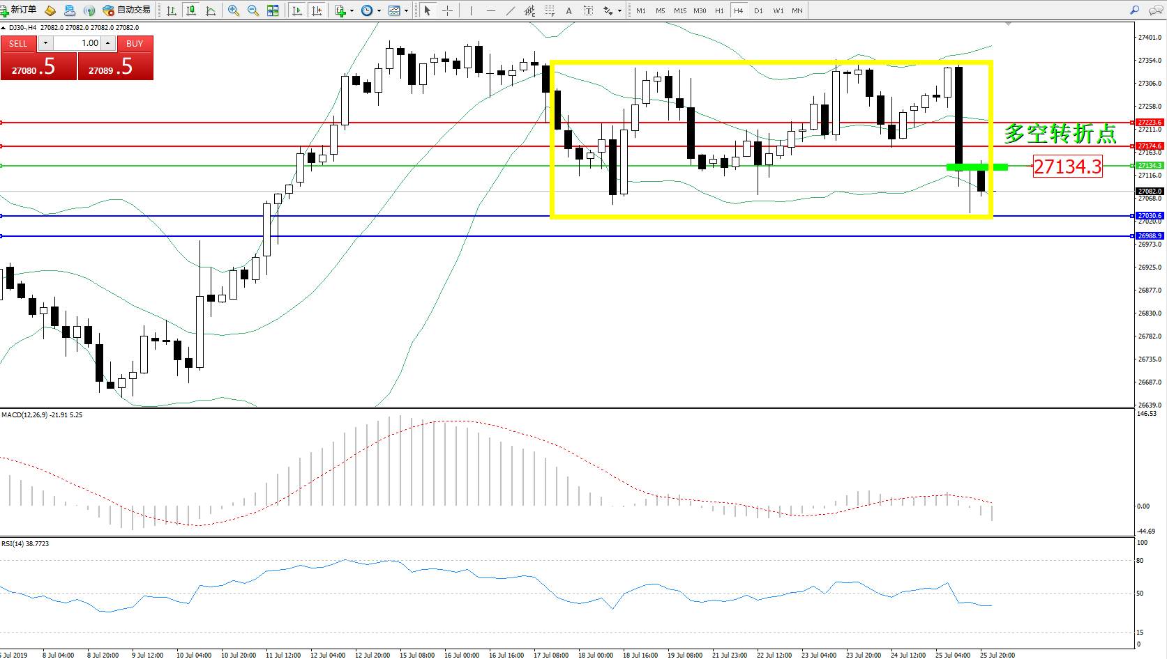 道琼斯指数725日(周四)收盘下跌129.00点,跌幅0.47%,报27140.98点。美国6月耐用品订单月率初值大幅好于预期,增加2%,预期0.7%,北京时间72620:30,美国将公布第二季度GDP数据初值,可能对美联储下周降息幅度产生至关重要的影响。虽然美联储731日肯定能降息25个基点,但市场认为降息50个基点的可能性也有20%左右,这个比例似乎过高了。如果二季度GDP数据足够坚挺,这将最终打破美联储降息50个基点的预期,为美元带来复苏空间。