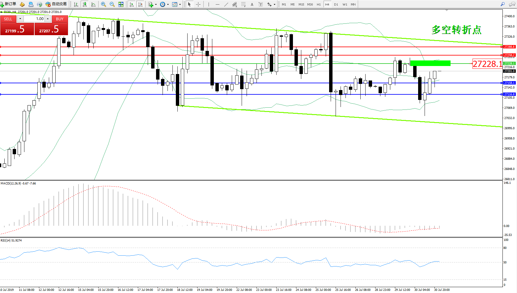 道琼斯指数730日(周二)收盘下跌23.30点,跌幅0.09%,报27198.02点。投资者都在密切关注本周四凌晨美联储即将公布的最新的决议内容,鉴于美国之外的经济体增速放缓的风险,目前市场普遍预期美联储将降息25基点。美国总统唐纳德特朗普表示,小幅降息“还不够”。对美联储感到失望。希望看到美联储大幅降息以及停止量化紧缩。