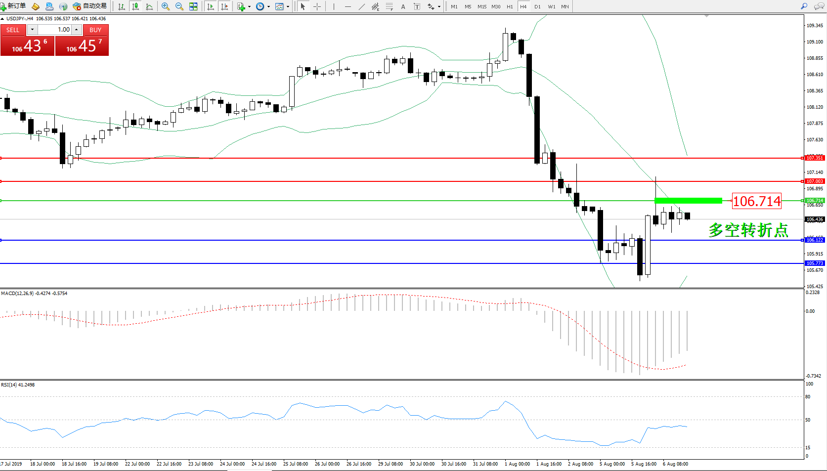 交易策略:106.714下方看跌,目标106.122、105.773