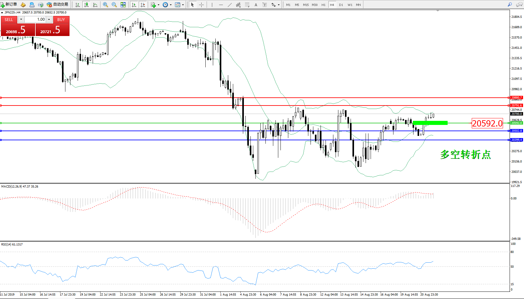 日经指数JPN225——4小时K线图: