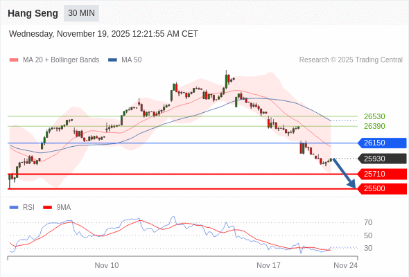 恒生指数 当日内: 存在压力。