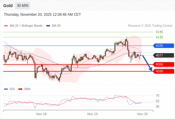 在 4105 之下,看跌,目标价位为 4050 ,然后为 4030 。