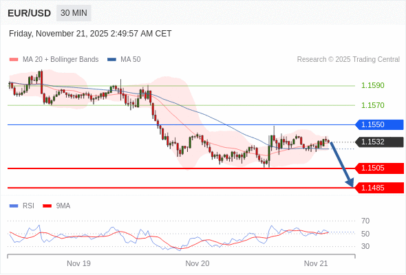 在 1.1550 之下,看跌,目标价位为 1.1505 ,然后为 1.1485 。