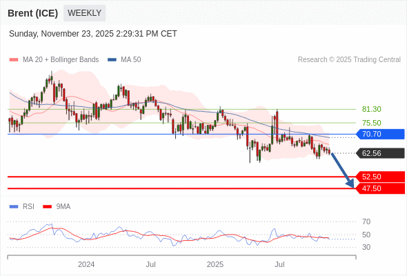 交易策略: 在 70.70 之下,看跌,目标价位为 52.50 ,然后为 47.50 。