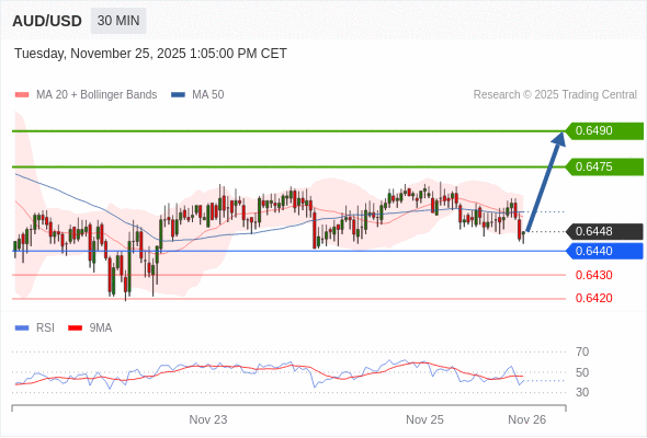 在 0.6440 之上,看涨,目标价位为 0.6475 ,然后为 0.6490 。