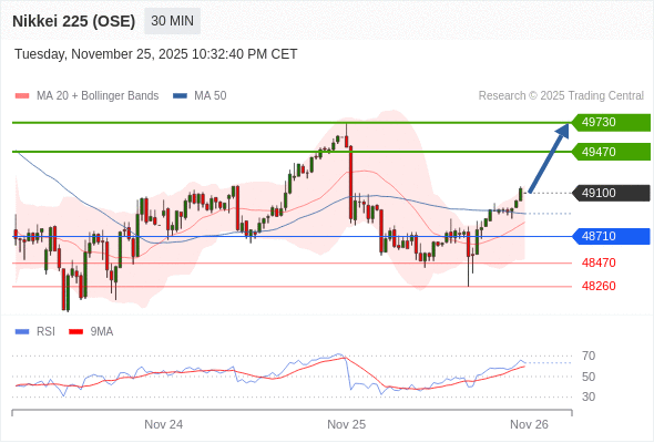 日经225股指期货 (OSE) 当日内: 超短线(当日内)支撑位在48710附近。