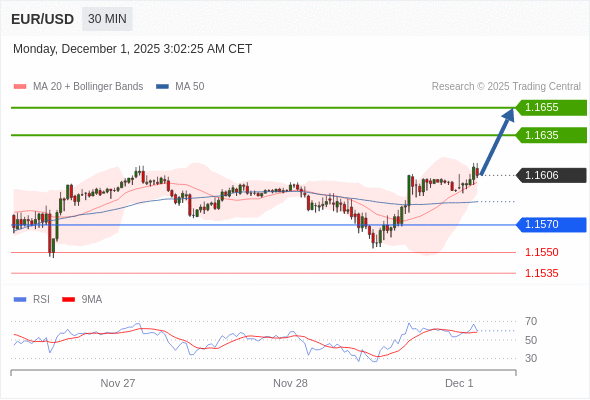 在 1.1570 之上,看涨,目标价位为 1.1635 ,然后为 1.1655 。