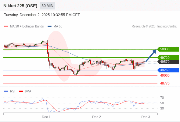 交易策略: 在 49720 之下,看跌,目标价位为 49250 ,然后为 49060 。