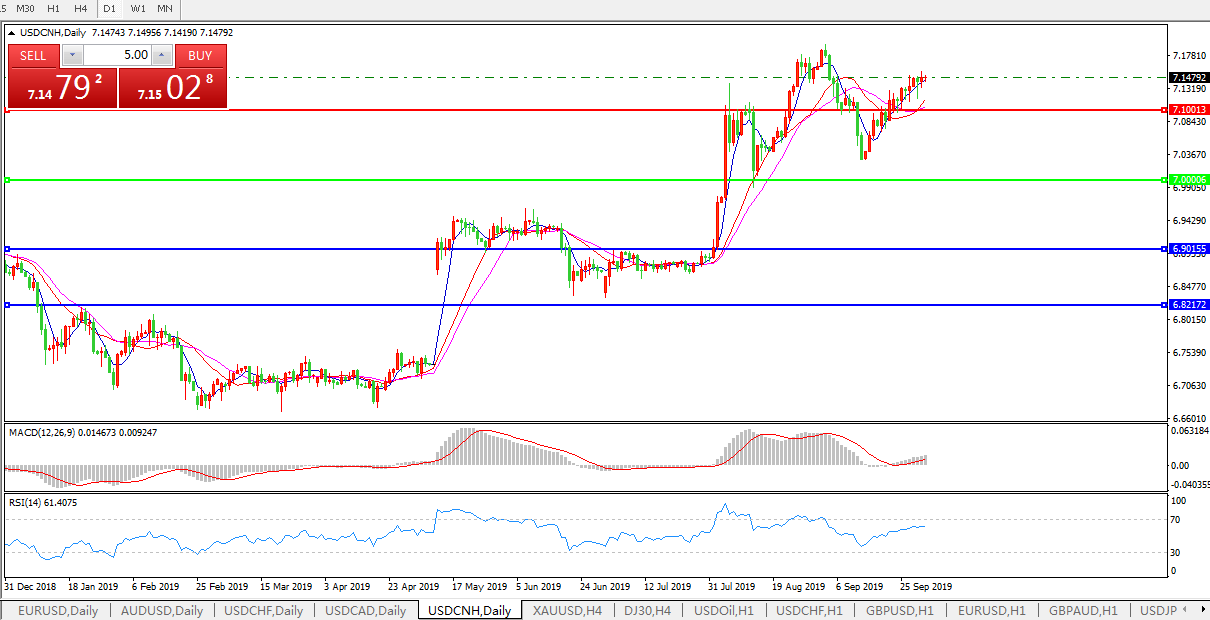 技术面简析:日图短期均线延续攻势,汇价站稳7.10关口并保持攻势,MACD逼再度走升且有放量迹象,RSI缓步走升,预计短期汇价有进一步上行空间,上方重点关注7.20-7.30区间的压制;中美贸易谈判进展须持续关注。
