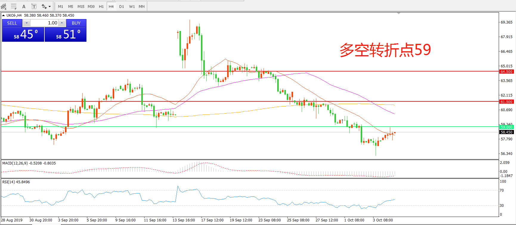 交易策略:在59.00之下看跌,目标57.00 55.00