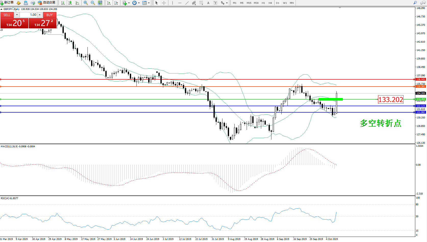 技术点评:强势多头拉升上扬,突破布林带指标中轨后有继续上行态势,关注上轨附近压制,或有更深层次走高,MACD指标处于0轴线下方弱势徘徊,RSI指标空头区域多头动力突破50均衡线后强势拉升中;
