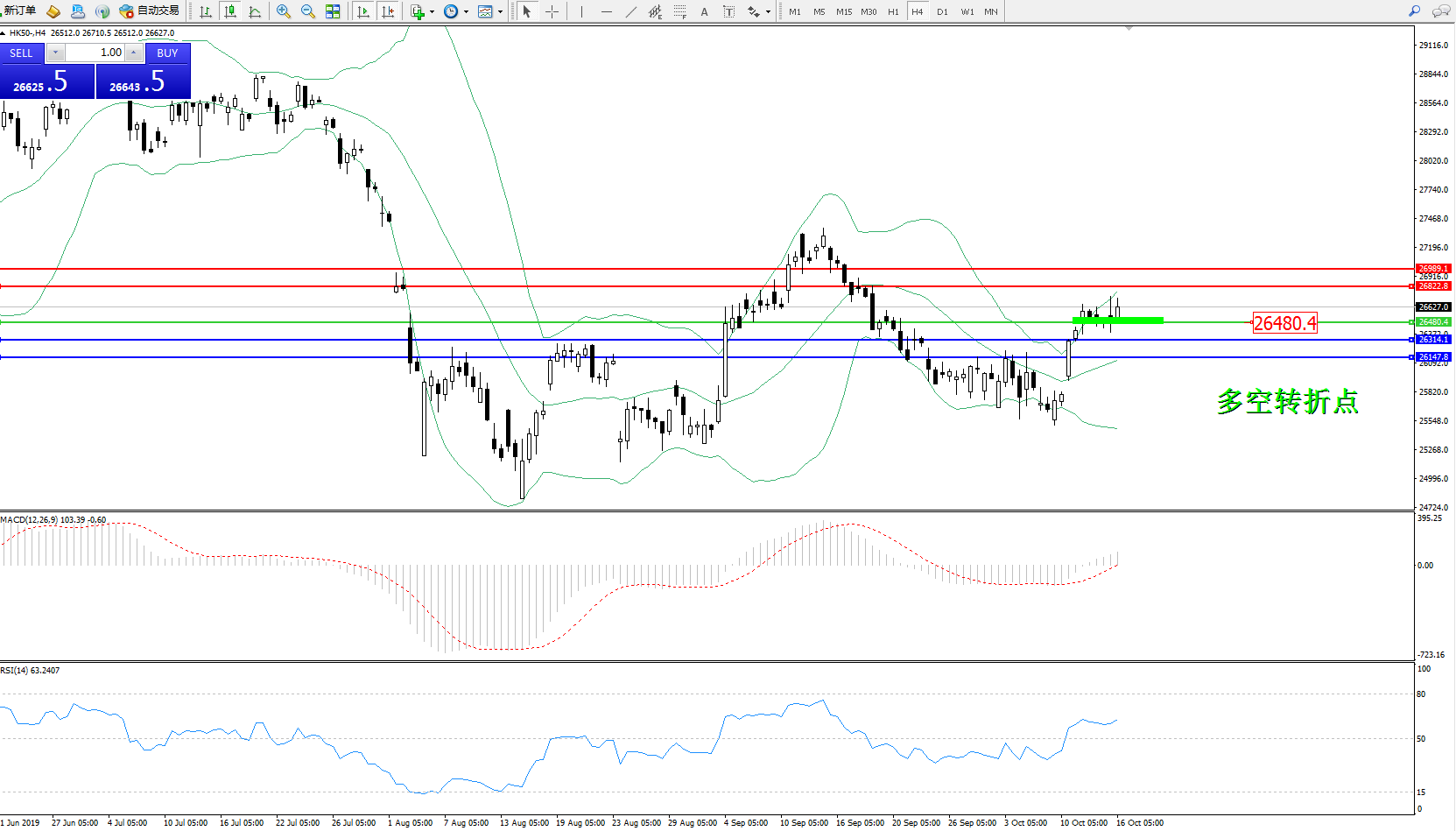 香港恒生指数10月16日(周三)收盘上涨160.35点,涨幅0.61%,报26664.28点;截至今日收盘,恒指大市成交额为823.36亿港元(上一交易日成交额为756.82亿港元)。恒生地产指数涨幅扩大至2.78%,香港蓝筹地产股的板块涨幅扩大至4%以上。美国三大股指全数上扬。美股收高,投资者对一大批乐观的企业盈利报告表示乐观,同时考虑了上周五宣布的部分中美贸易协议的影响以及英国退欧谈判可能突破的可能性,支撑了股市的攀高。