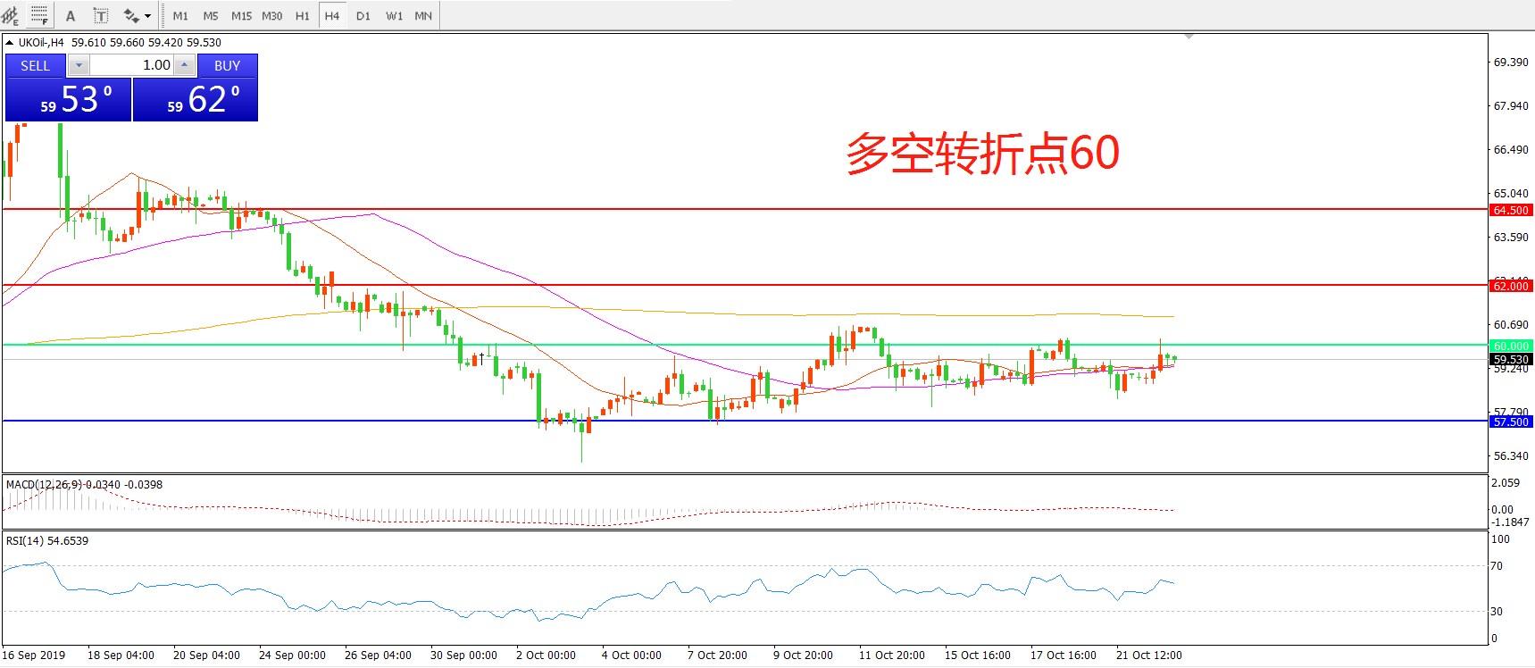 交易策略:在60.00之下看跌,目标57.50 55.00