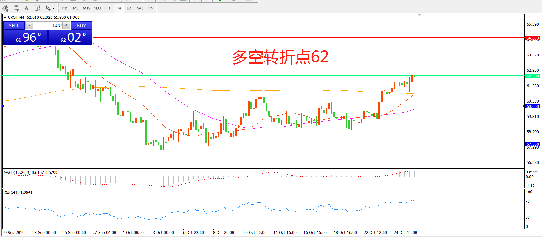 多空转折点:62.00
