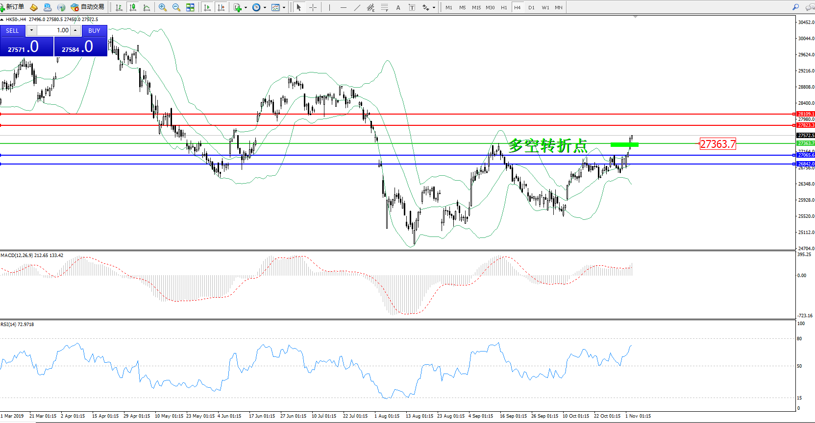 恒指HK50 ——4小时K线图显示: