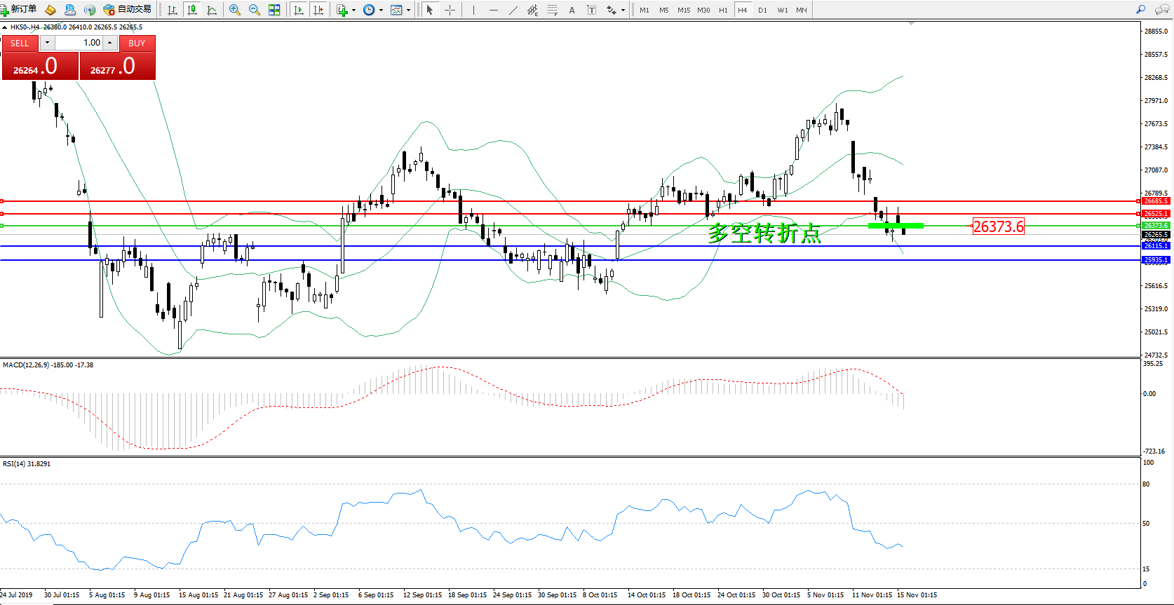 香港恒生指数11月15日(周五)收盘上涨2.97点,涨幅0.01%,报26326.66点;港股高开后扩大升幅至26544。随后沽盘涌现,多重因素袭来,都令大市受压,料港股短期也不会有太大改善,恒指或下试26,000点水平,商务部公布10月份生产物价指数 PPI 按月升0.4%,略多过预期0.3%,是近6个月最大升幅。本周末也正是一些超预期或者黑天鹅披露的时间段,或许就在这周末会看到一些事情结果。