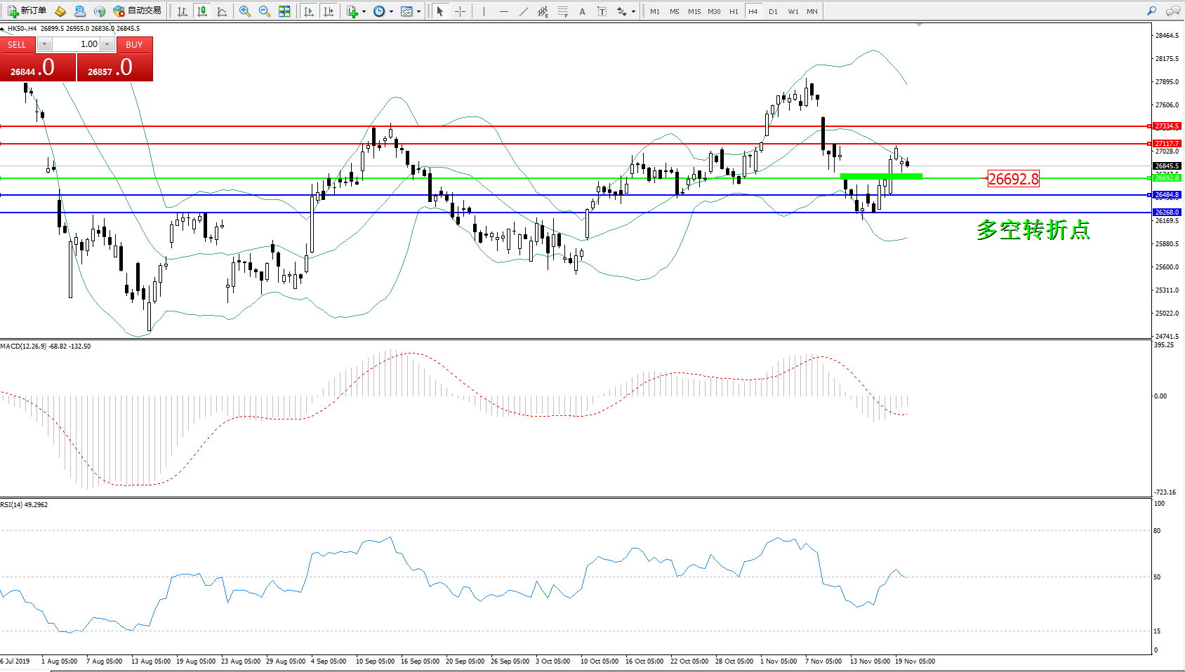 恒指HK50 ——4小时K线图显示: