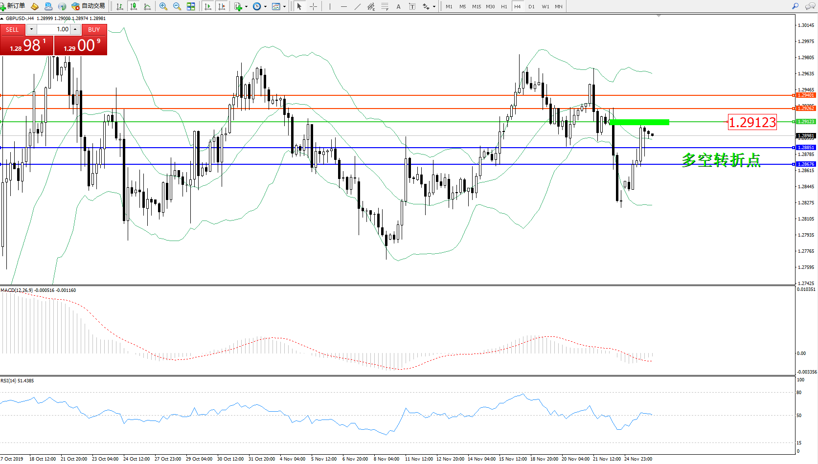 交易策略:1.29123下方看跌,目标1.28851、1.28676