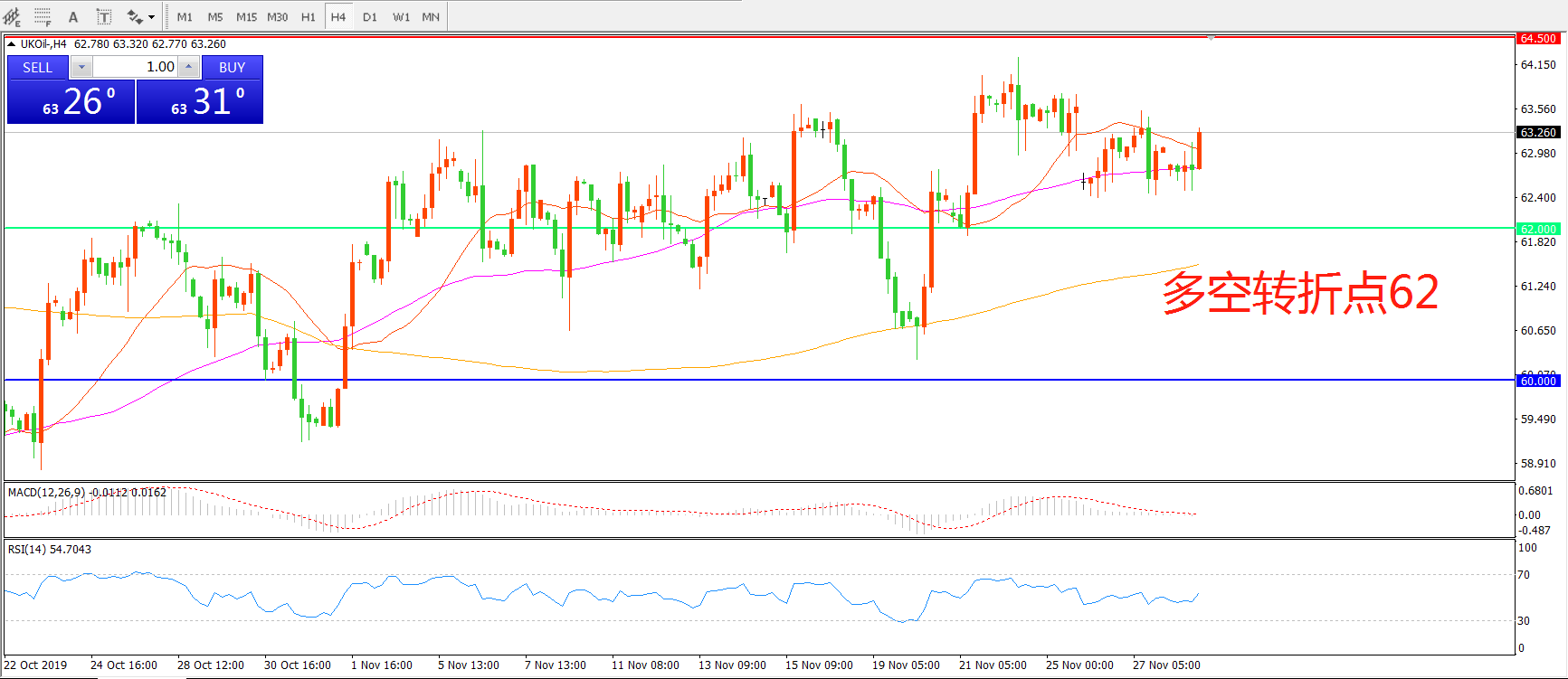 周三(11月28日),EIA利空影响持续发酵,盘中油价一度因中美贸易紧张关系而下跌,但尾盘OPEC+延长减产的预期支撑油价反弹并以上涨收盘,布伦特原油先跌后涨,收报63.26美元/桶。OPEC的全体会议定于12月5日在维也纳举行,俄罗斯目前对于减产的态度十分模糊,是否会以OPEC同意调整俄罗斯的产量配额为条件与OPEC达成其他协议等问题会让OPEC大会的博弈变的异常复杂。
