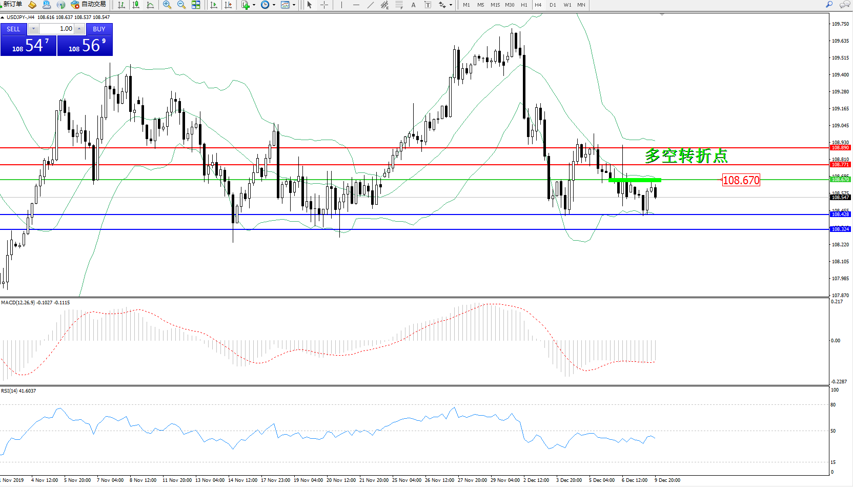 交易策略:108.670下方看跌,目标108.428、108.324