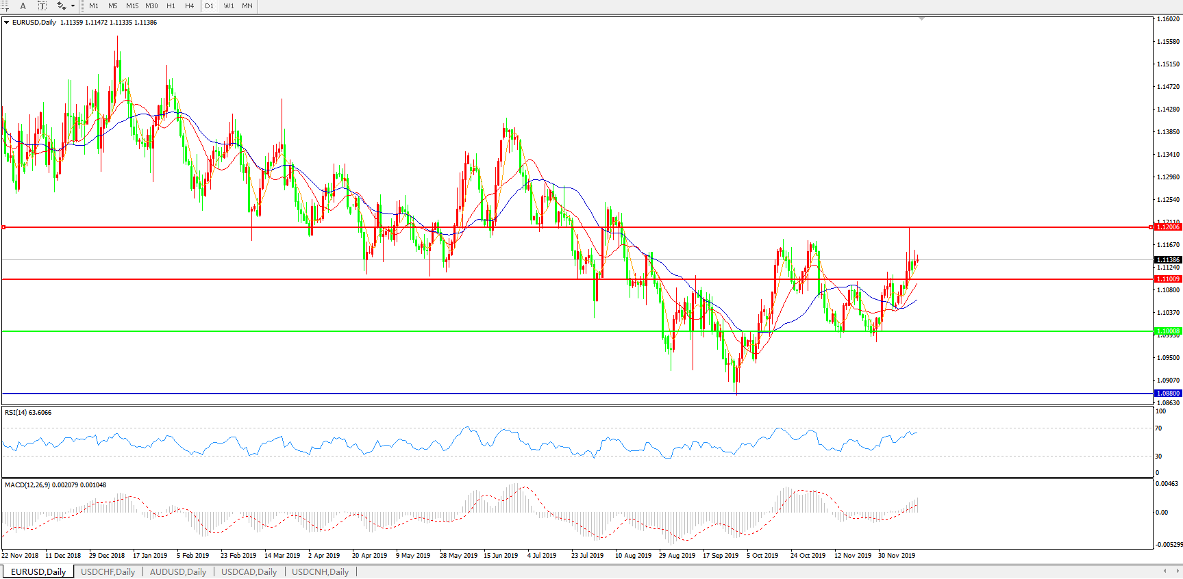 周一(12月16日)欧元区法国德国公布12月Markit PMI初值,数据显示法德制造业PMI均不及预期; 法国12月Markit制造业PMI初值跌至50.3,预期值为51.5,法国全国范围内发生了反对养老金改革的罢工,制造业活动出人意料地接近停滞,但更强劲的服务业活动帮助抵消了制造业增长放缓的影响,因此数据公布后欧元探底回升; Markit经济学家Eliot Kerr表示,最新的PMI数据显示,法国私营部门的经济活动将进一步增长,但制造业的结果令人失望。在10月和11月出现一些复苏萌芽之后,制造业生产陷入停滞,新订单又回到了收缩区间; 随后公布的德国12月Markit制造业PMI初值43.4,不及预期44.6,德国12月份私营部门活动连续第四个月出现萎缩,数据公布后,欧元兑美元回落10余点跌至1.1131;欧洲最大的经济体正在经历一段疲软时期。在贸易摩擦、汽车业境况不佳以及英国退出,欧盟计划存在不确定性的背景下,欧洲以出口为导向的制造商苦苦挣扎。