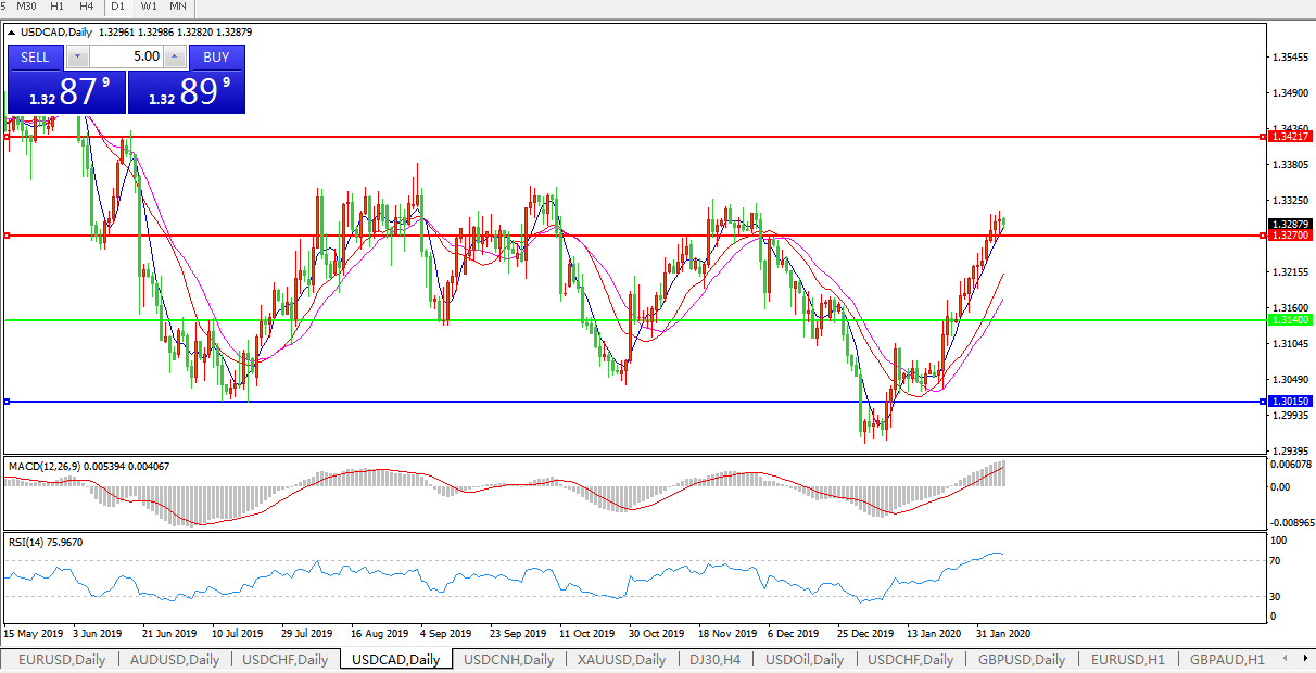 技术面简析:日线图均线呈多头排列,汇价上攻态势保持良好,MACD开始走升且量能0轴上方持续放量,RSI超卖区域小幅走低,预计汇价短期大概率将延续整理上行态势。