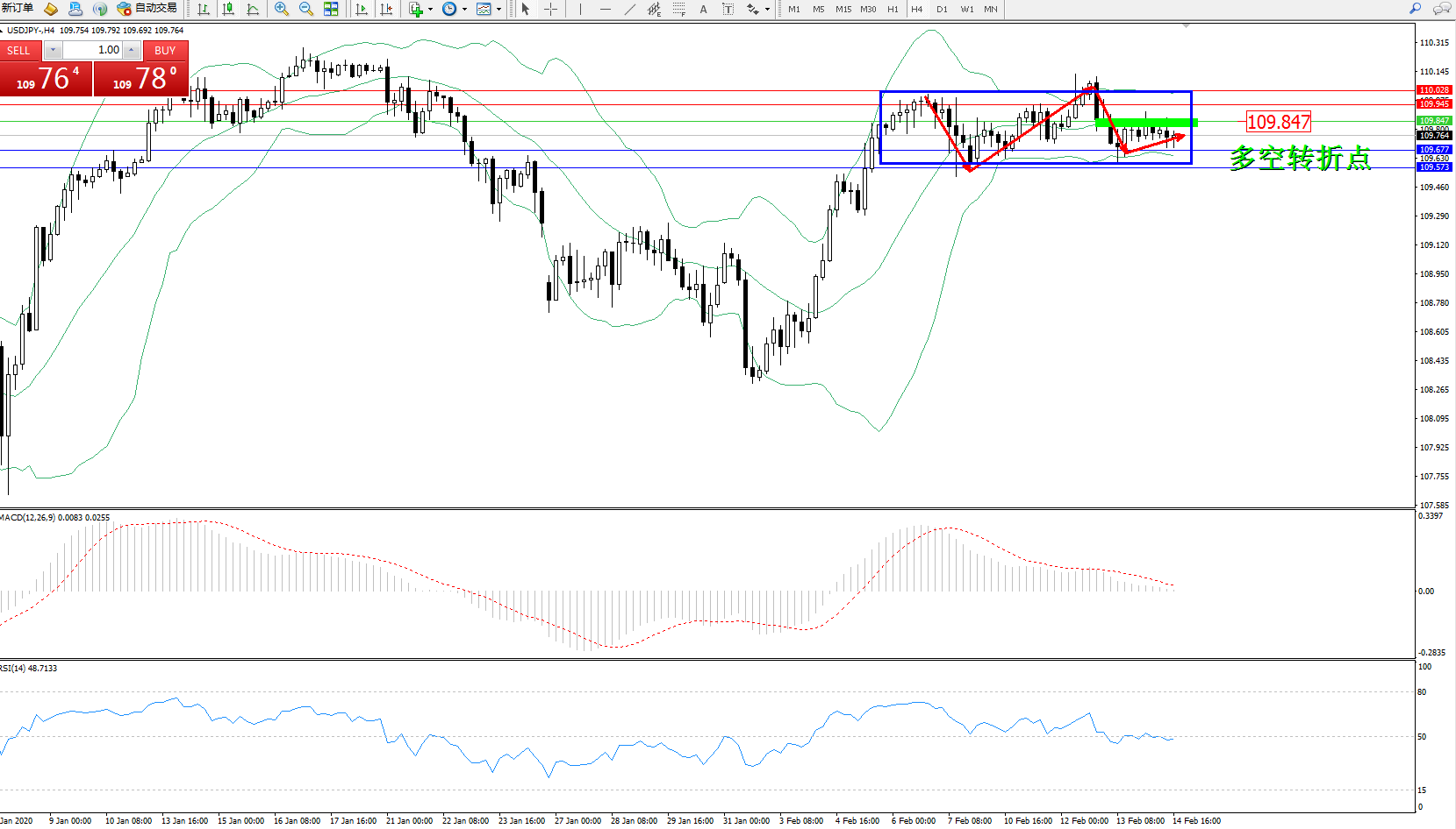 技术点评:矩形高位整理持续数日,纠结于布林带指标中下轨区间窄幅徘徊平移中,MACD指标处于多头区域高位整理缓慢下移至0轴线附近弱势徘徊中,RSI指标纠结于50均衡线弱势整理平移中;