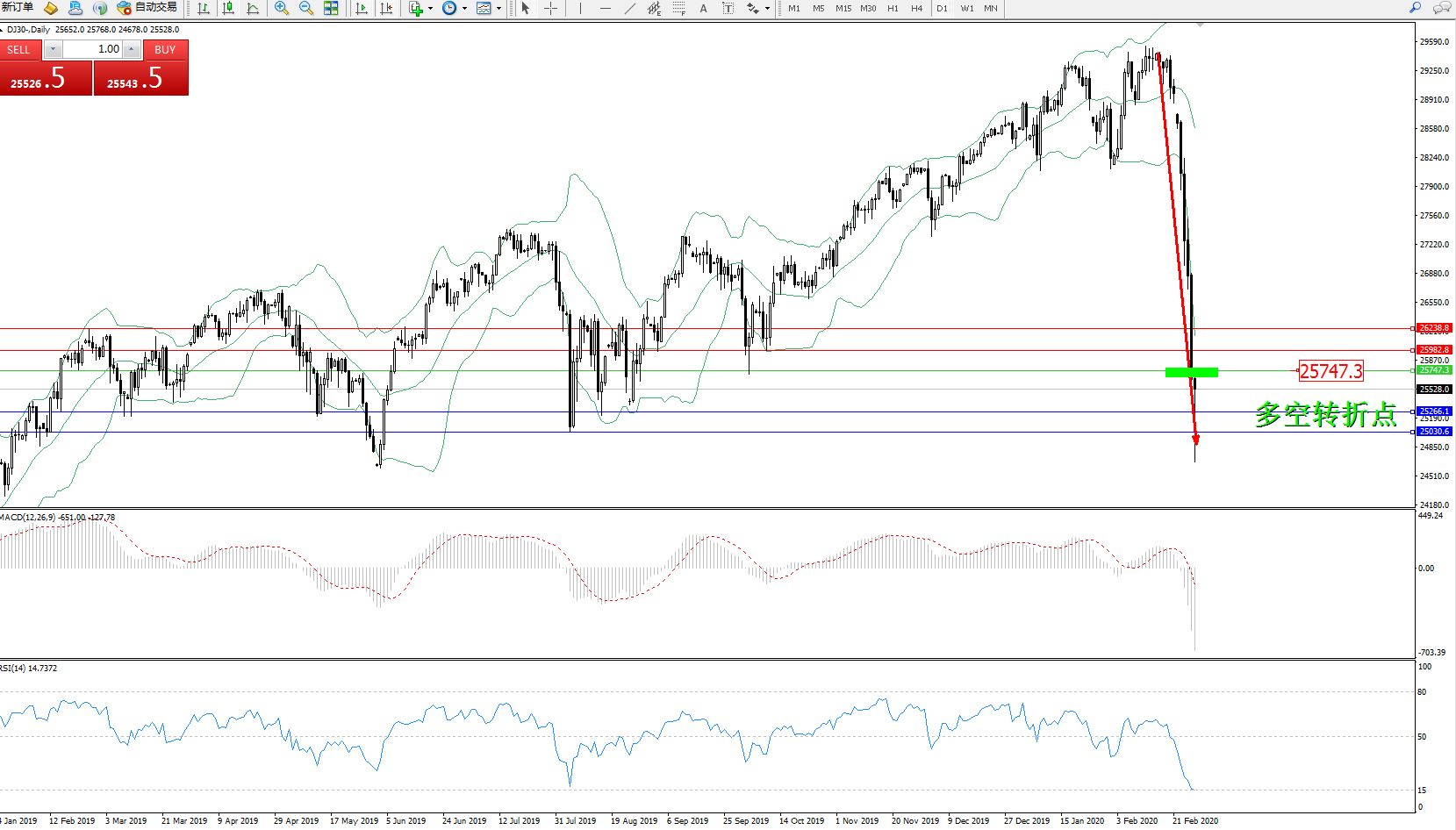 道琼斯指数228日(周五)收盘下跌357.50点,跌幅1.39%,报25409.15点。公共卫生事件引发全球金融市场震荡,美股本周表现为金融危机以来最差,,道琼斯数跌至6月以来的最低水平,股市市值蒸发近3万亿美元。资者先抛掉手中股票,然后才开始想问题。我们看到了清仓迹象。不惜一切代价离场似乎成了市场普遍的情绪。毫无疑问,公共卫生事件将继续对全球经济造成压力,美国也无法幸免。损失惨重的多头周五从美联储那里获得了提振,美联储主席鲍威尔表示,美联储正在关注病毒的影响,会在适当时候采取行动,其补充称美国经济基本面依然强劲。美银策略师目前预计,美联储会在3月份会议上减息50基点。白宫经济顾问库德洛建议投资者逢低买进。