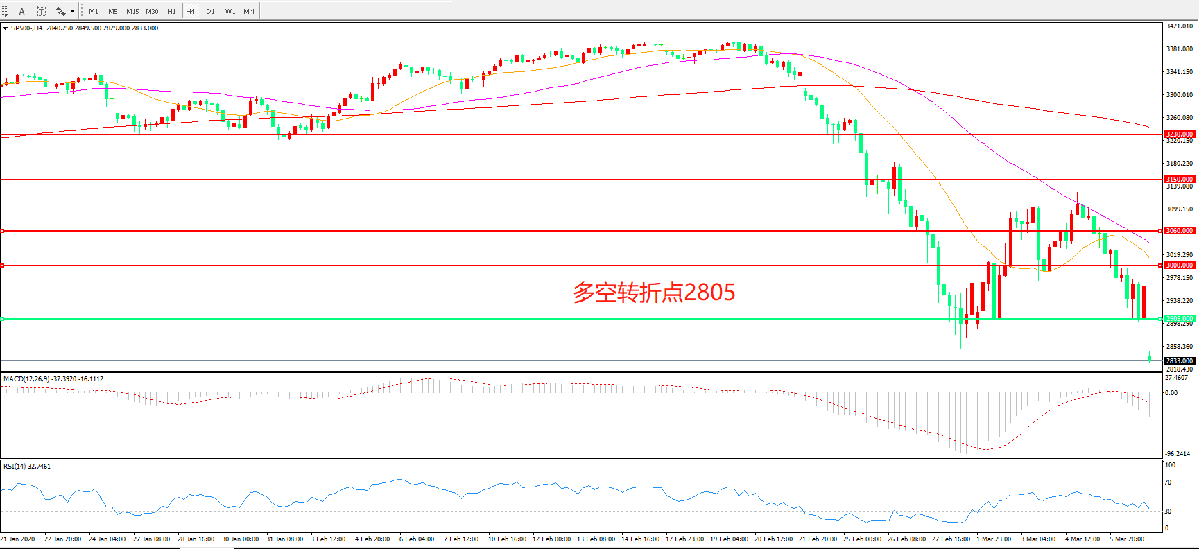 由于OPEC减产谈判破裂,沙特开启“全面油价战争”,周一WTI原油大幅低开近20%!这种极端行情导致了风险资产遭到抛售,标普500大幅低开,截止收稿前,收报2839.75点。