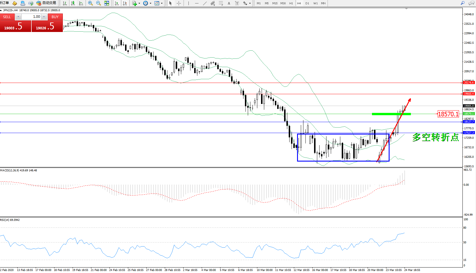 日经225指数3月24日(周二)收盘上涨1189.72点,涨幅7.04%,报18077.50点。创2016年2月中旬以来最大升幅。日本首相安倍晋三正在考虑设立一个专家组,以研究是否应就新冠病毒大流行宣布紧急状态;专家组可能最快会在周三成立;报道未透露消息来源。隔夜美联储的无限宽松行动,令全球多资产反弹走高,但疫情带来的负面冲击料难以被宽松行动对冲掉。围绕疫情持续很长时间的担忧导致全球流动性紧缩,这促使美联储本月推出了一系列强力措施,从增加互换额度到周一宣布无限量购债等等;日本史无前例的使用互换额度,其中一部分原因在于成本;日本央行行长黑田东彦:目前预计ETF账面损失为2-3万亿日元,日本房地产投资信托基金(J-REIT)的账面损失约为0.1万亿日元,正密切监控市场动态。