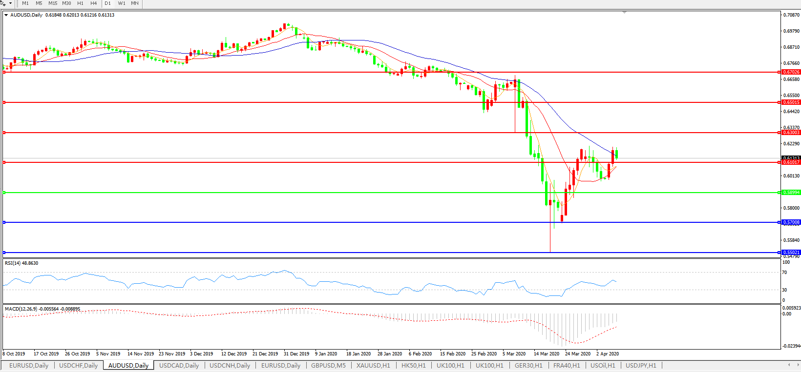 澳元兑美元AUDUSD    日线图: