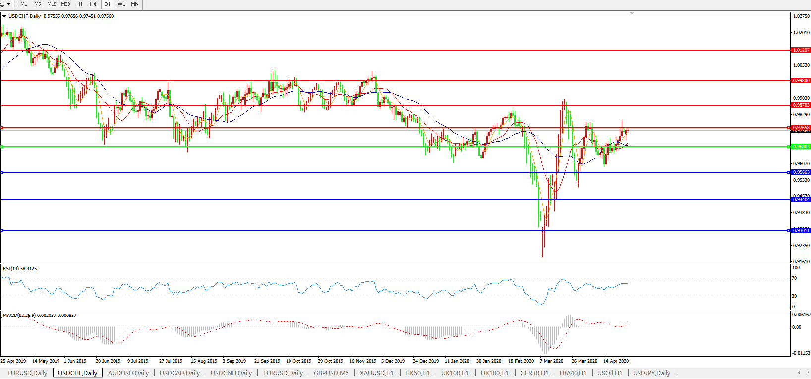 交易策略:0.9680上方看涨,目标0.9765、0.9870