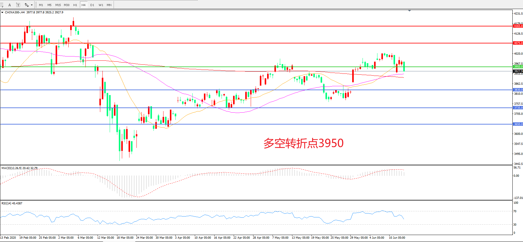 沪深300  CHINA 300   4小时图