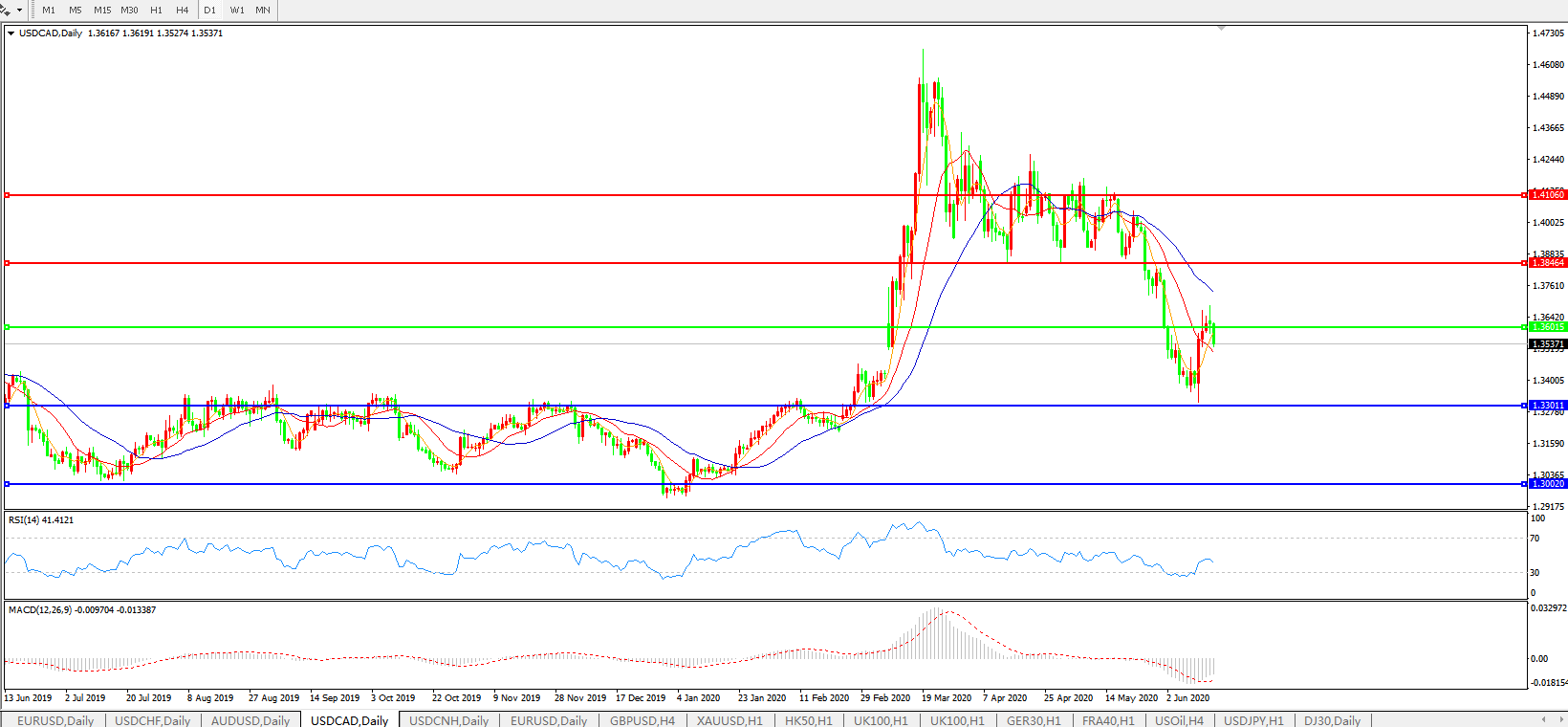 交易策略:在1.3600之下,看跌,目标价位为1.3300、1.3000