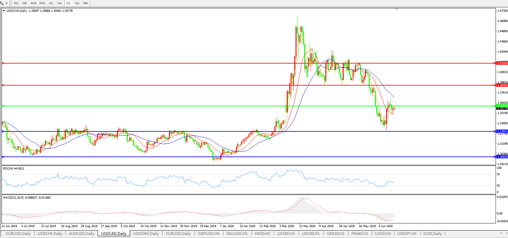 交易策略:在1.3600之下,看跌,目标价位为1.3300、1.3000