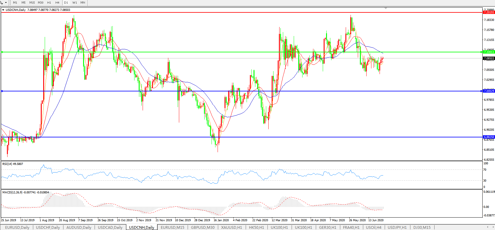 备选策略: 在7.1000之上,看涨,目标价位为7.2000,然后为7.3000。