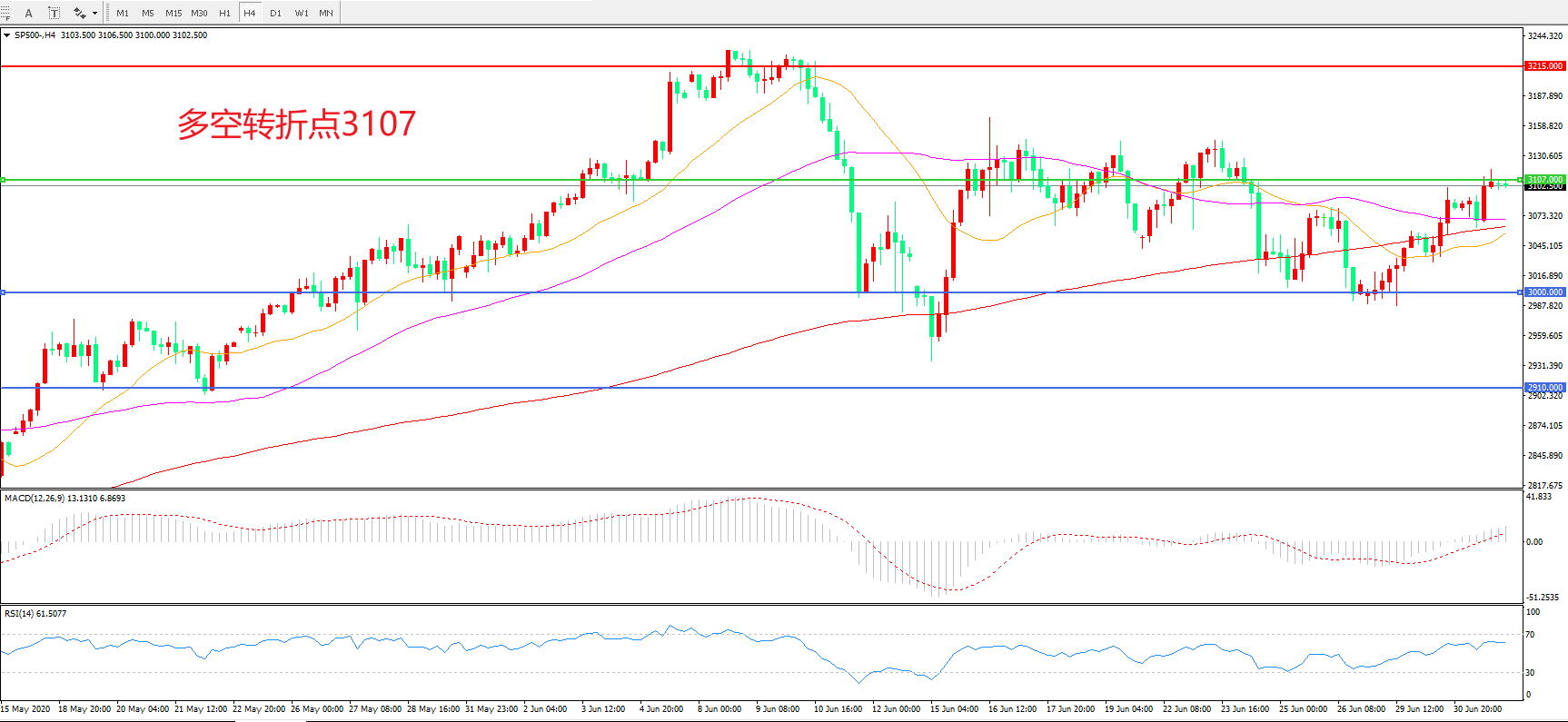 周三(7月1日),有“小非农之称的”美国6月ADP就业人口增加236.9万,低于预期,但新冠病毒疫苗利好消息提振了市场人气,标普500震荡反弹,收报3106点。美联储公布的6月会议纪要显示,联储官员要将近零利率长期保持,直到有信心经济抵御了冲击并处于实现就业和通胀双重目标,高度宽松的货币政策对股市未来形成提振。