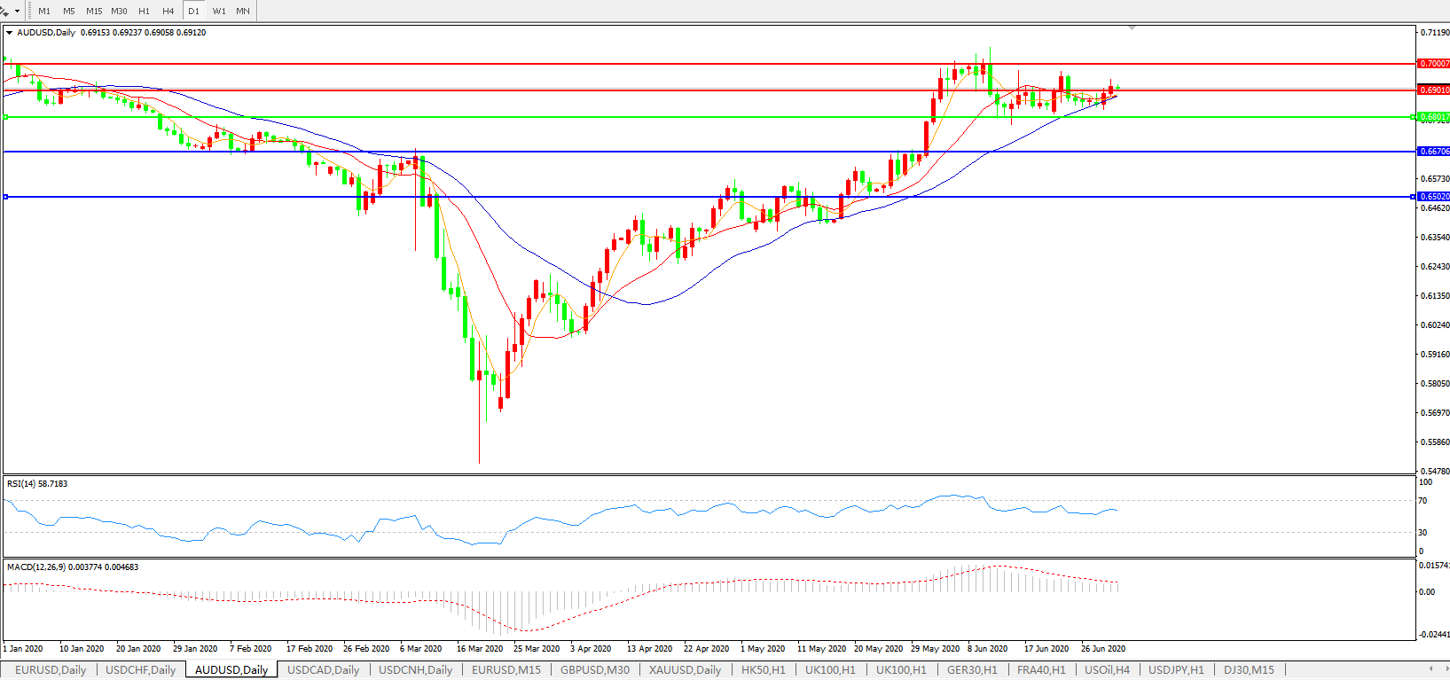 交易策略:0.6800上方看涨,目标0.6900、0.7000