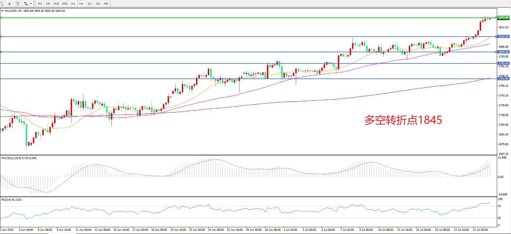 交易策略:在1845.00之上看涨,目标1880.00   1900.00