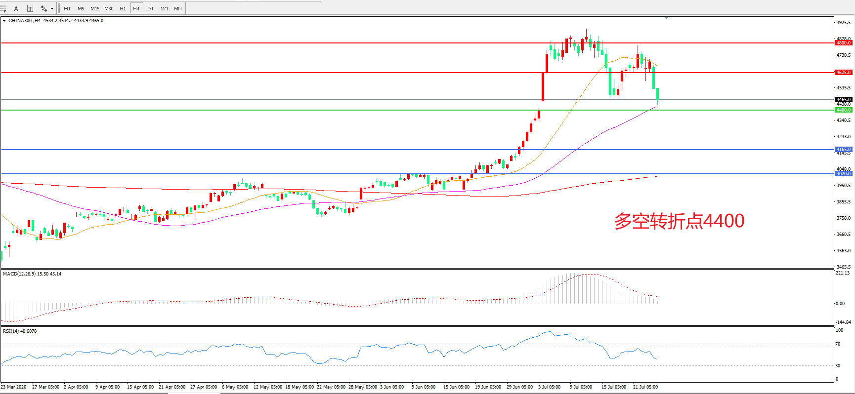 多空转折点:4400.00