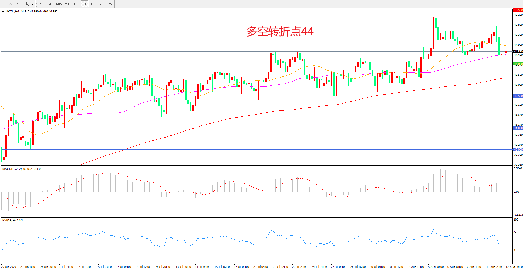 交易策略:  在44.00之上看涨,目标46.50      49.00