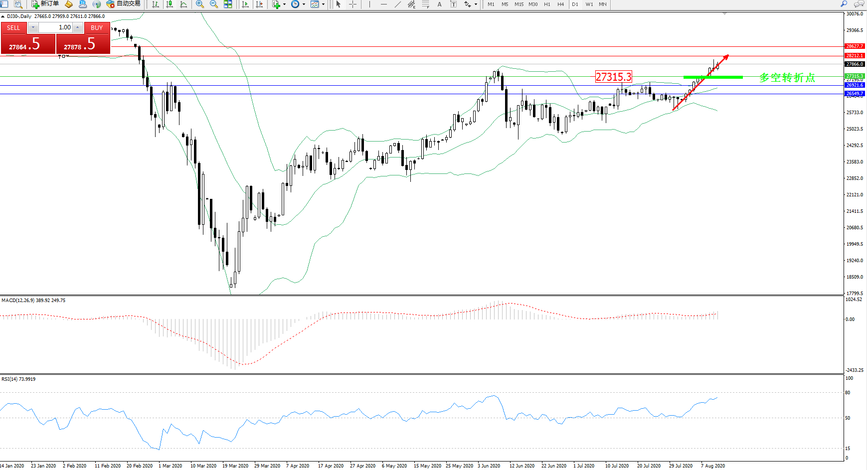 技术点评:多头动力延续布林带指标上轨附近持续震荡上扬走势良好,前期高位破位后有继续拉升态势,布林带指标呈张口走势中,且有扩大波幅迹象,MACD指标长时间处于0轴线上方维持窄幅弱势整理平移中,RSI指标处于多头区域持续整理向上移动态势良好;