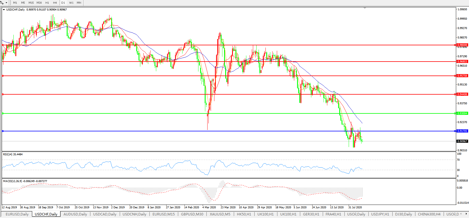 交易策略:0.9300下方看跌,目标0.9170、0.9000